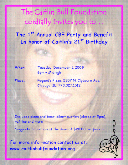 Sigma Nu Fraternity & Starbusters Bar & Grillwill be hosting a fundraiser for the Caitlin Bull Foundation on APRIL 15th, 2010.